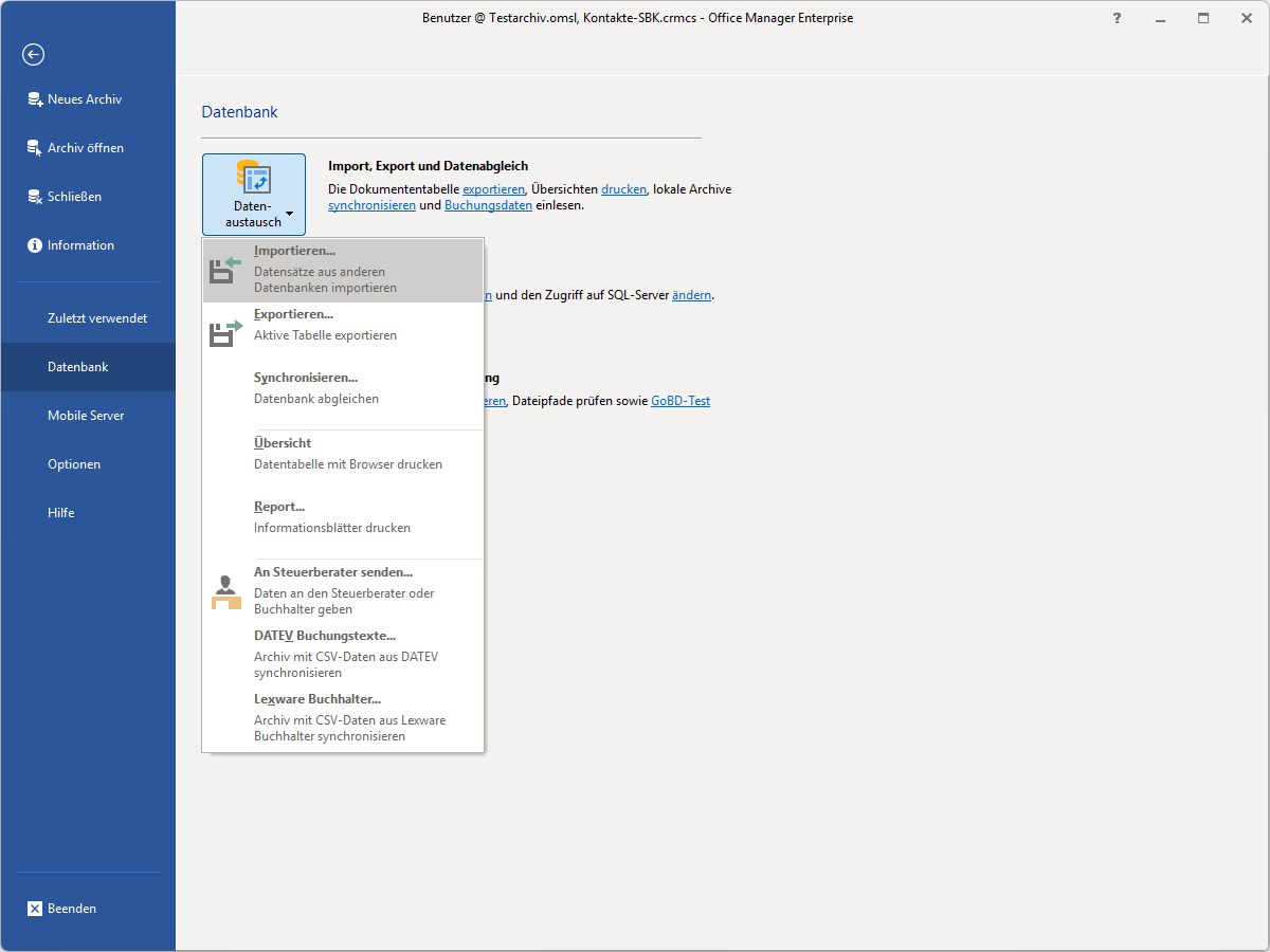 Starten Sie Office Manager DMS und öffnen Sie das Archiv, in welches die Daten importiert werden sollen. Oder erstellen Sie ein neues.